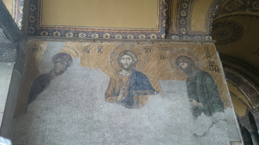 Mosaic. The faces of St John and Virgin Mary are said to be serious as they are asking Jesus to forgive.